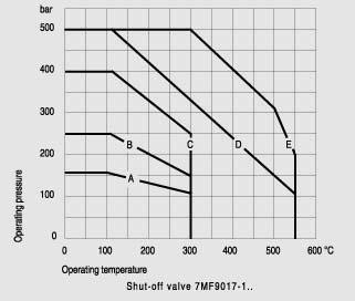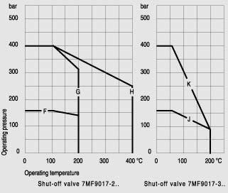Shut-off valve 7MF9017-1.., permissible working pressure as a function of the permissible working temperature