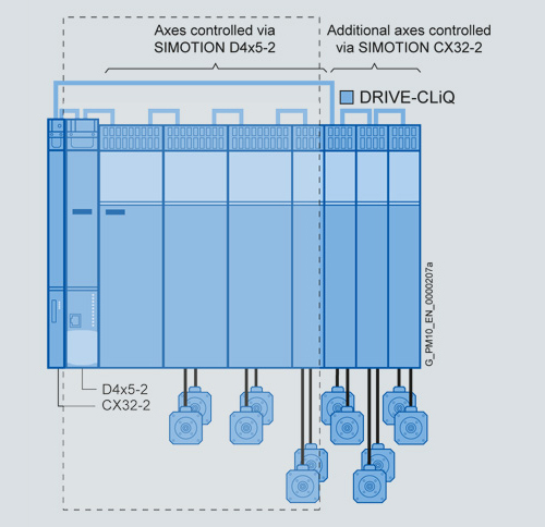 Пример: Группа из 12 осей с контроллером SIMOTION D4x5-2 и модулем расширения SIMOTION CX32-2