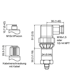 SITRANS P210, electrical connections, dimensions in mm (inch)