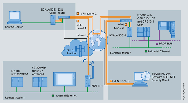 Защищенный удаленный доступ через Интернет с использованием модулей SCALANCE S, DSL маршрутизатора и EGPRS маршрутизатора MD741-1