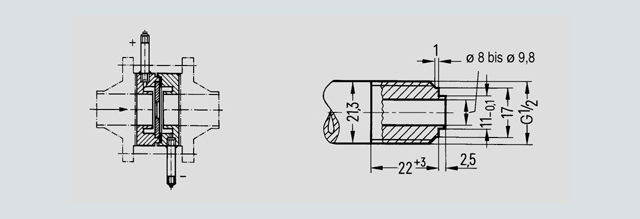 - Threaded connections of tapping sockets for liquids and gases up to PN 160, for steam up to PN 100, dimensions in mm