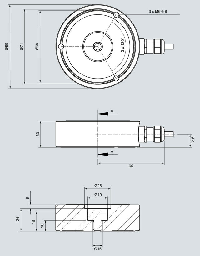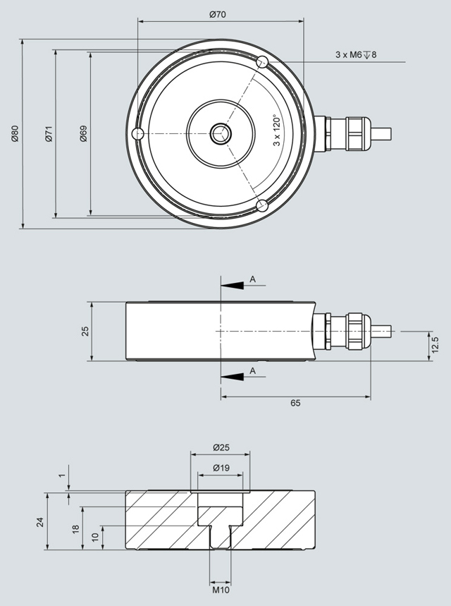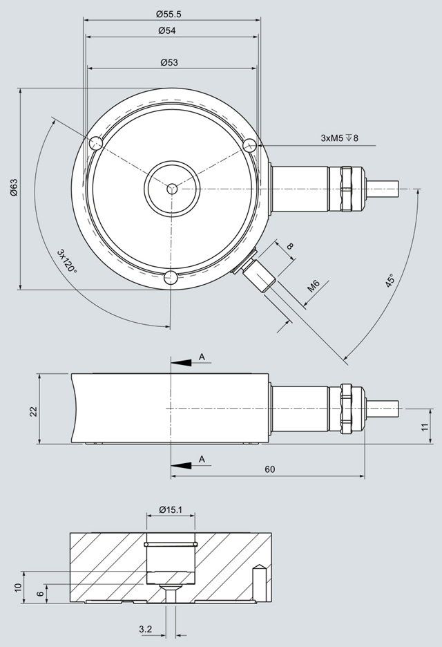 Датчик веса SIWAREX WL280 RN-S SA (2 t, 3 t, 5 t), размеры в мм