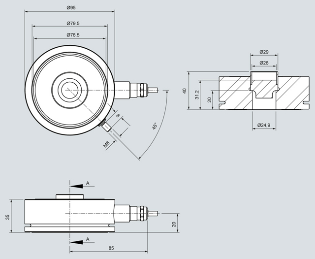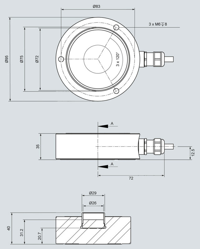 Датчик веса SIWAREX WL280 RN-S SA (60 kg, 130 kg, 280 kg), размеры в мм