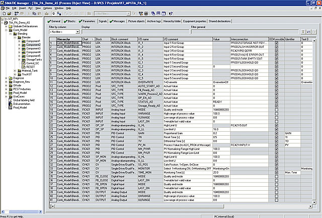Библиотеки содержат обширный набор блоков, в состав которых входят простейшие логические блоки и блоки приводов, технологические блоки с встроенными функциями оперативного управления и обработки аварийных сообщений, блоки двигателей и задвижек с подготовленными экранными формами, а также блоки для подключения приборов полевого уровня через сеть PROFIBUS-DP и PROFIBUS-PA профиля 3.0.