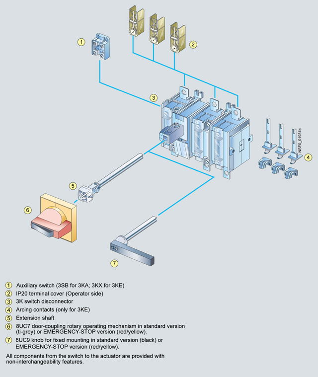 Идентичные принадлежности для 3KA выключателей разъединителей и для 3KL и 3KM выключателей разъединителей с предохранителями упрощают складское хранение.