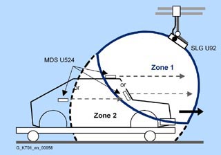 Несмотря на низкую мощность излучения УВЧ-системы имеют относительно большое рабочее расстояние. Излучаемое поле имеет диаграмму направленности, которая зависит от конструкции антенны. Чтобы поддерживать низкие энергетические потребности MDS и обеспечить удобство определения местоположения, MOBY U имеет различные функциональные зоны, которые зависят от направления и расстояния. Эти три различных зоны передающего поля идентифицируются различными состояниями и реакциями затронутых компонентов.