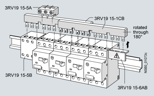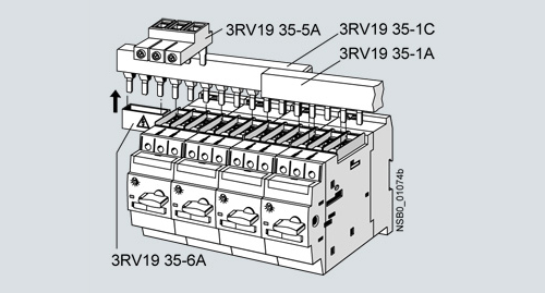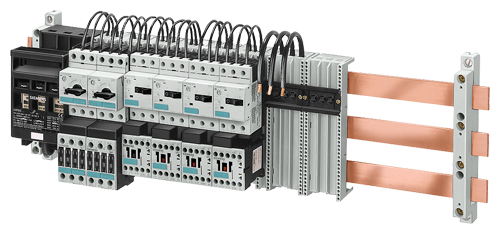 Для питания нескольких силовых автоматических выключателей 3RV1 типоразмеров SOO, SO и S2 используются трехфазные сборные шины.