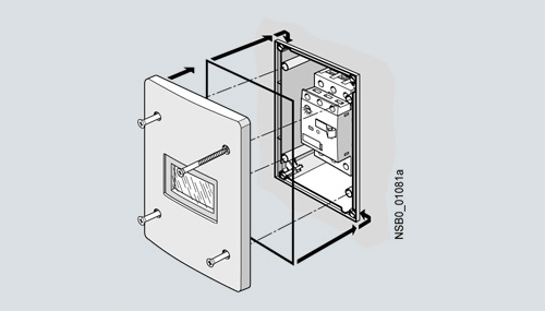 Передние панели для типоразмера SOO имеют крепежную рамку, в которой выключатели могут крепиться защелками.