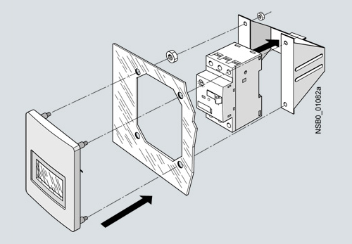 Для передних панелей типоразмеров от SO до S3 поставляется крепежная рамка под силовой автоматический выключатель типоразмера SO.