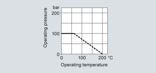 Кран переключения PN 100 и допустимое избыточное рабочее давление в зависимости от допустимой рабочей температуры