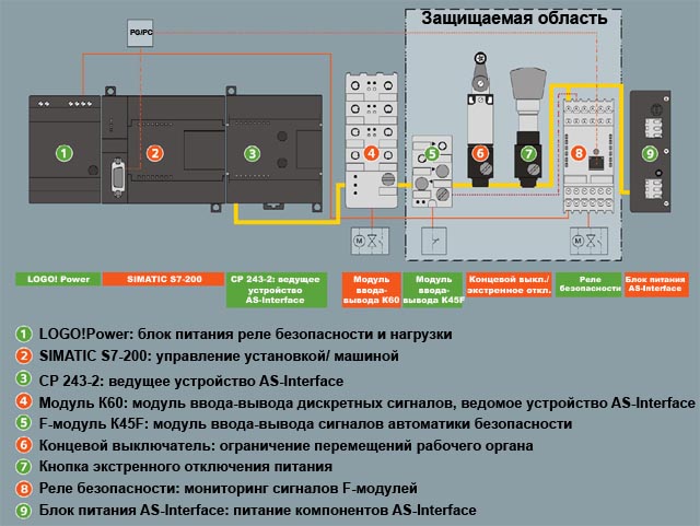 - Чрезвычайная безопасность – Монитор Безопасности позволяет получить низкостоимостное безопасное переключение с возможностью использовать микро ПЛЦ S7-200 подключенного к шине AS-Intereface. Это означает, что приводы и датчики полевого уровня могут быть легко объединены в сеть идеальной формы и также просто могут быть отключены в критической или опасной ситуации.