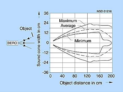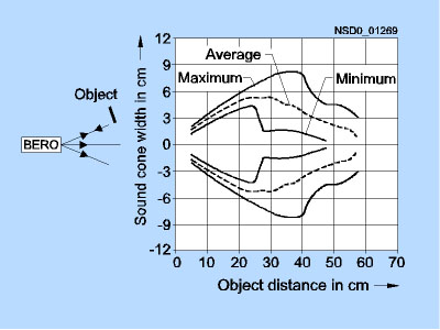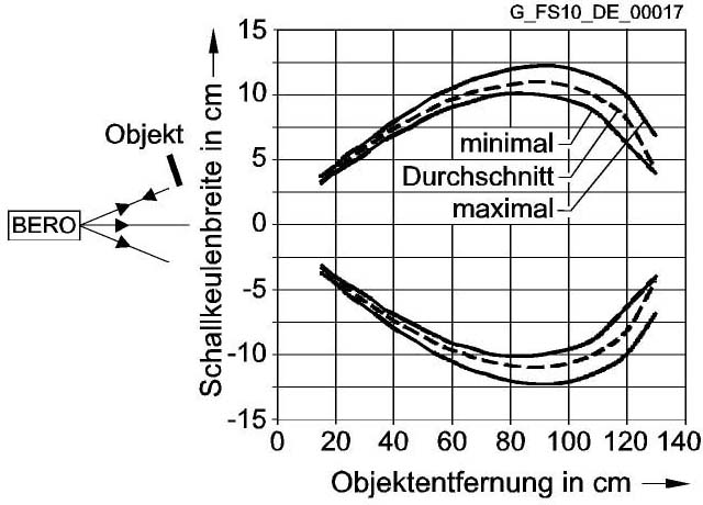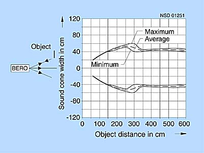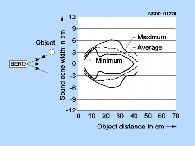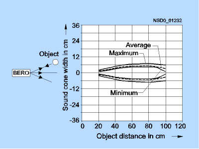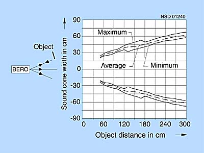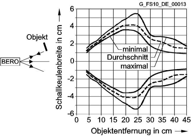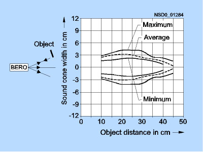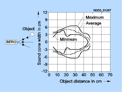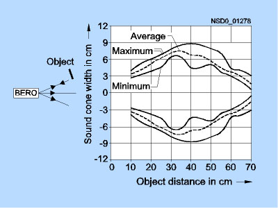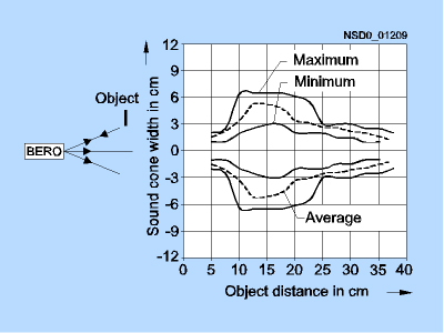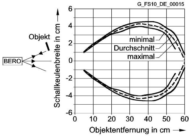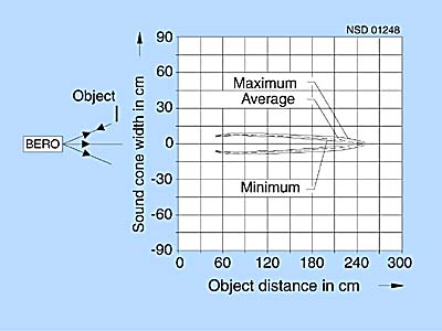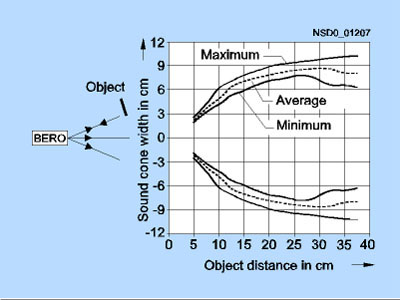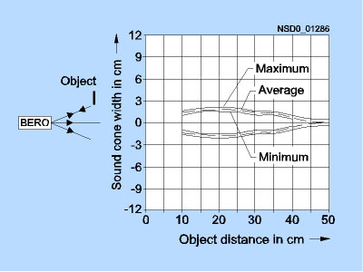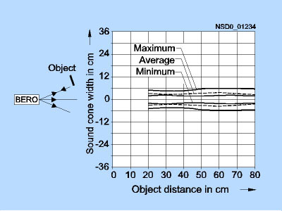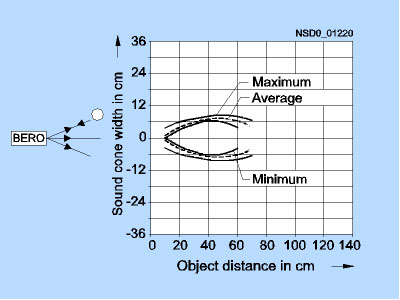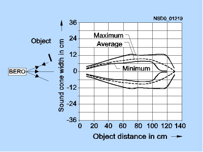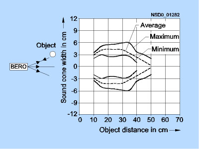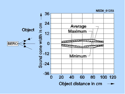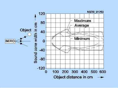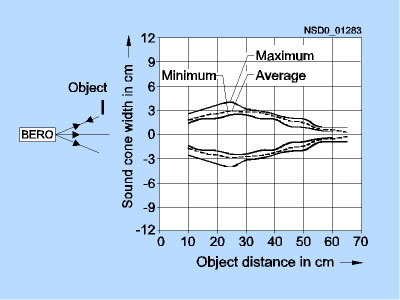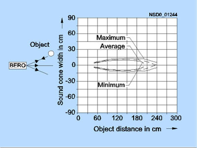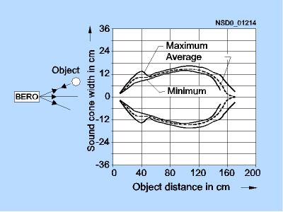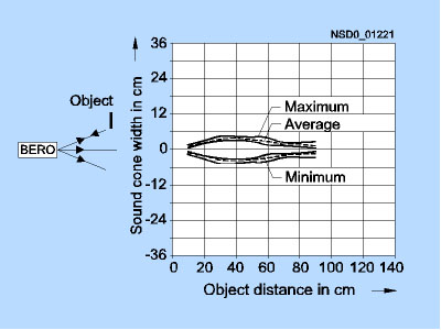 Следующие диаграммы - результат измерений звуковой зоны датчиков Sonar BERO при комнатной температуре (20 °C).