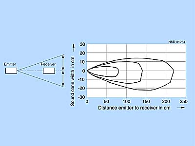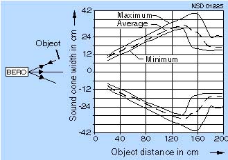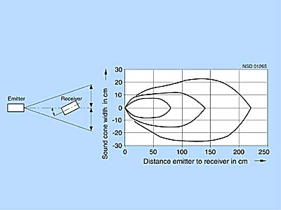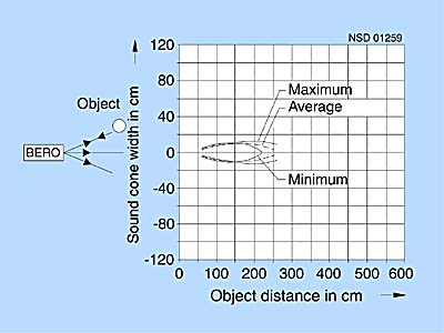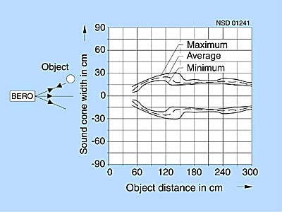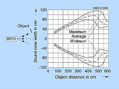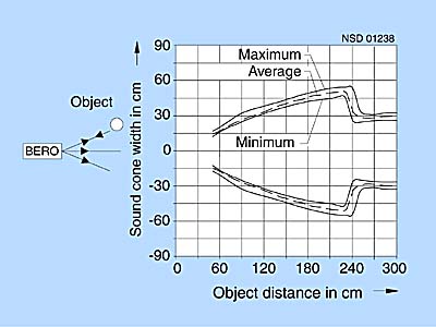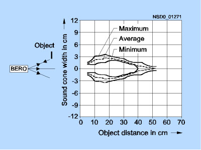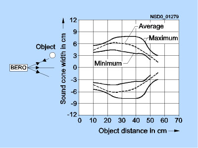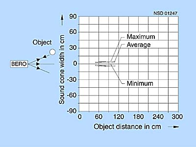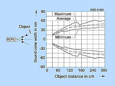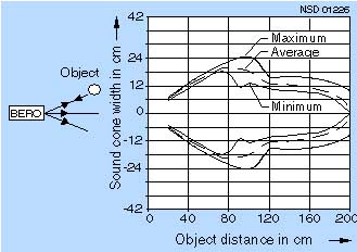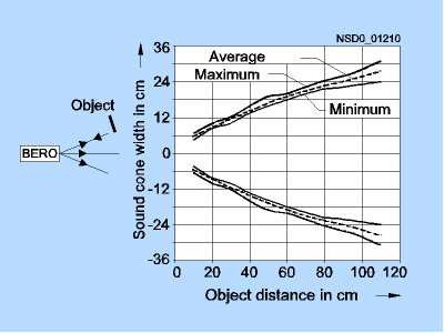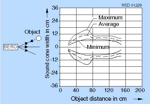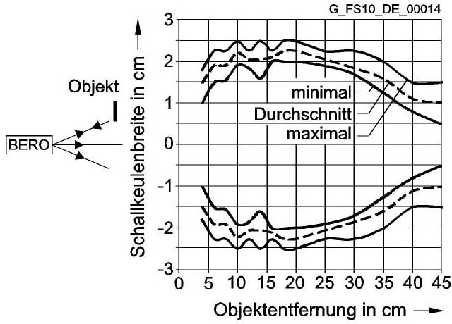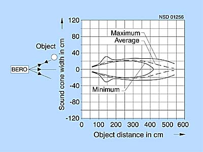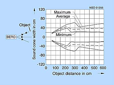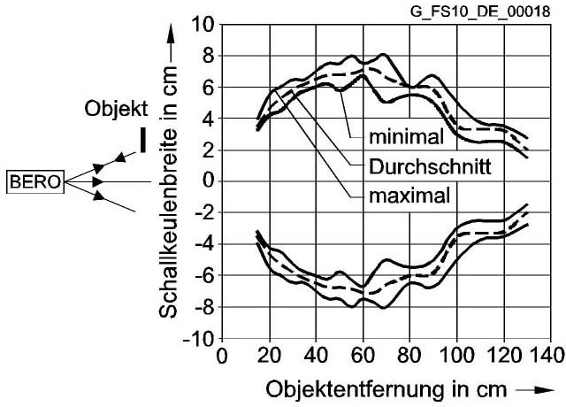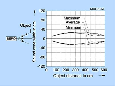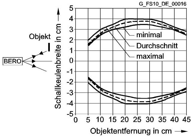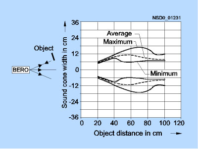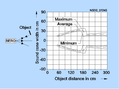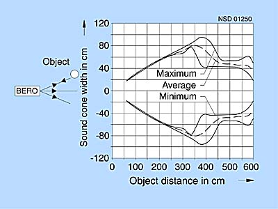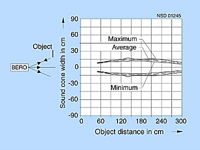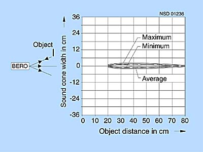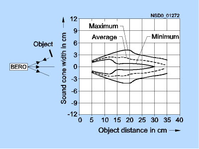 Следующие диаграммы - результат измерений звуковой зоны датчиков Sonar BERO при комнатной температуре (20 °C).