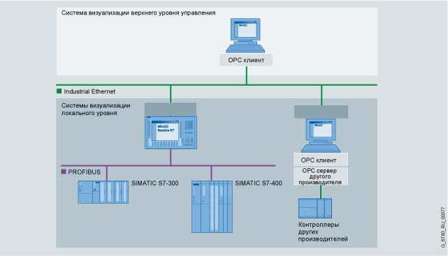 Параллельно с выбранной PLC- связью WinCC flexible Runtime возможно использование канала OPC- клиент; это позволяет, например, связь SNMP-OPC сервера с визуализацией его данных. SNMP-OPC сервер может контролировать любые компоненты сети (например, Switch), которые поддерживают протокол SNMP. Более подробная информация находится в каталоге IK PI.