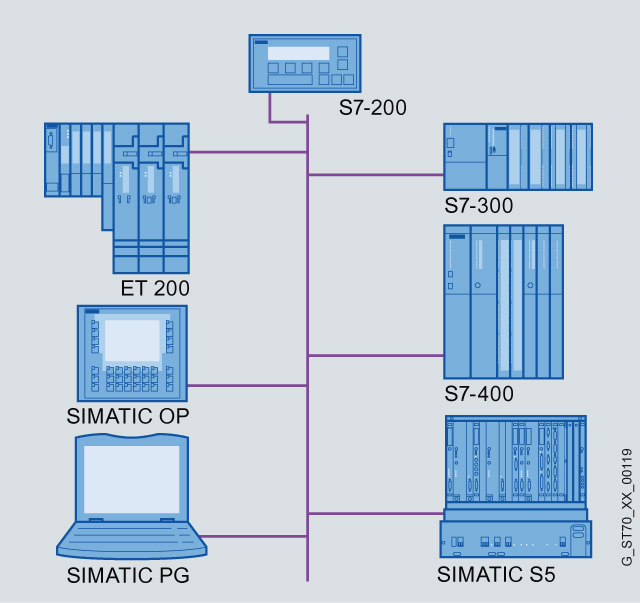 PROFIBUS-DP используется для организации однородной связи между всеми системными компонентами SIMATIC, обеспечивает возможность использования изделий других фирм-изготовителей. SIMATIC S7-200 подключается к PROFIBUS-DP через модуль EM 277. Модуль выполняет функции стандартного ведомого DP-устройства и способен выполнять обмен данными со скоростью до 12 Мбит/с.