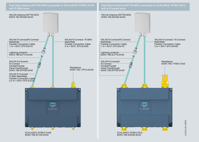 SCALANCE W788-1 RJ45 access points with dual slant antenna and SCALANCE W788-1 M12 with N-Connect connection