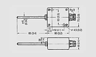 Термометр сопротивления для влажных помещений, размеры в мм (дюймах)