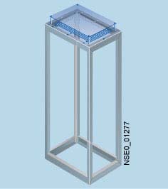 In the open area left by the frame, our perforated roof panel possess 8 x 8 mm holes in a 10 mm grid. In the version for degree of protection IP40, an additional fine-meshed grille is integrated below the holes.