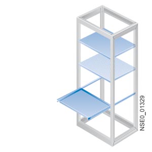 Shelves can be supplied for fixed mounting or as withdrawable shelves on telescopic rails. The maximum width of a shelf is calculated as the nominal cubicle width minus 60 mm. Load bearing capacity: 50 kg.