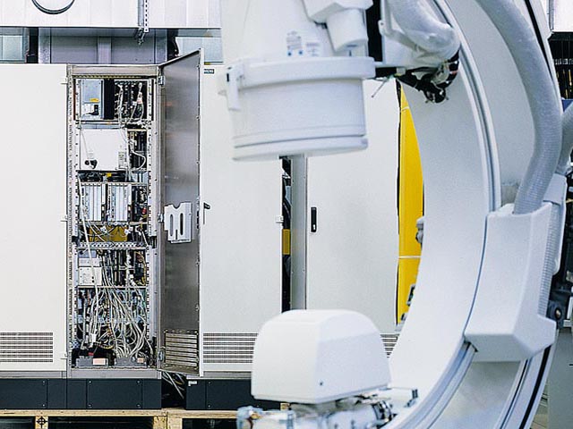 The shield attenuation of the 8MC/8MF EMC cubicles is approx. 60 dB over a frequency range from 10 kHz to 1 GHz (corresponds to an attenuation factor of 1000). By comparison, standard 8MF cubicles provide a shield attenuation of up to 20 dB.