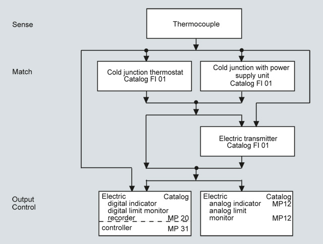 Комбинация приборов для измерения и регулирования температуры, с термопарой в качестве чувствительного элемента
