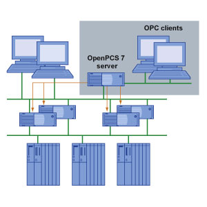 Система оперативного управления PCS7 является OPC-совместимой. OS станции PCS7 способны поддерживать функции OPC серверов обеспечивать доступ к своим данным со стороны других приложений. Программное обеспечение OS станций 1-местных систем и OS серверов включает в свой состав OPC Data Access Server, через который выполняется интерактивный доступ к значениям технологических параметров станции в соответствии с требованиями стандарта OPC Data Access 1.1 и 2.0. Дополнительные открытые интерфейсы, поддерживаемые опциональным пакетом WinCC/ Connectivity Pack, могут использоваться для обеспечения доступа к архивным и идентификационным данным OS станции.