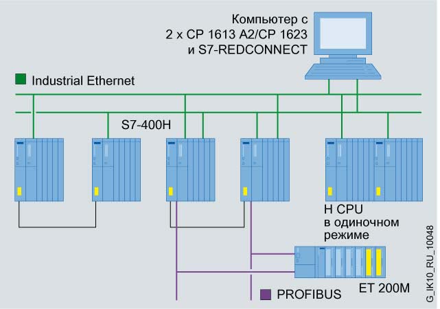 - Организация связи между компьютерами/программаторами и системами SIMATIC S7-400H через резервированные каналы связи Industrial Ethernet.
