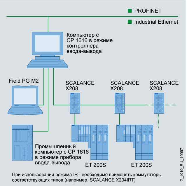 Использование CP 1616 в режиме PROFINET контроллера ввода-вывода и PROFINET прибора ввода-вывода