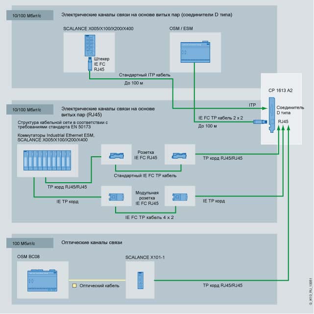 Подключение к сети с CP 1613 A2, CP 343-1 и CP 443-1