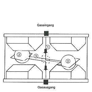 The microflow sensor consists of two nickel-plated grids heated to approximately 120 C, which, along with two supplementary resistors, form a Wheatstone bridge. The pulsating flow together with the dense arrangement of the Ni grids causes a change in resistance. This leads to an offset in the bridge, which is dependent on the concentration of the sample gas.