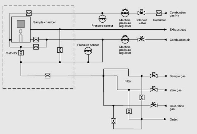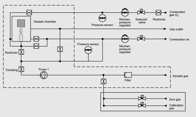 FIDAMAT 6 total hydrocarbon analyzer, gas path with pump and with connection for combustion air
