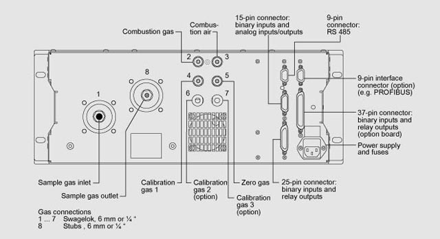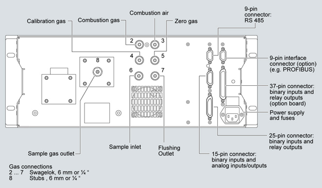 FIDAMAT 6, gas connections and pin assignment, version with pump
