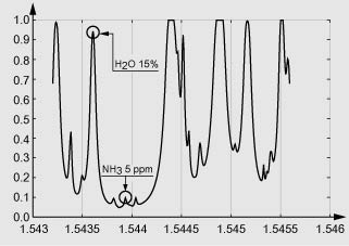 In some specific cases, two components can be measured simultaneously if their absorption lines are so close to each other that they can be detected within the laser spectrum by one single scan (for example water (H2O) and ammonia (NH3)).