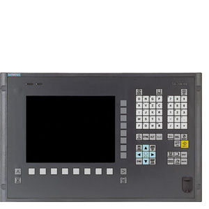 Панель оператора SINUMERIK OP 010 с цветным дисплеем TFT 10,4” и 640 x 480 пикселей (VGA) имеет оптимизированную для программирования программ обработки деталей пленочную клавиатуру с 62 клавишами и 8 + 4 горизонтальными и 8 вертикальными программными клавишами.