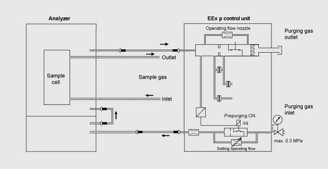 BARTEC control unit, continuous purging, gas connection diagram