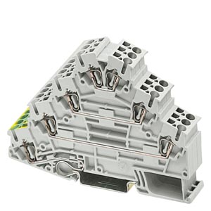 Контакт PE к несущей рейке устанавливается простым защелкиванием. Четырехъярусная клемма для двигателей