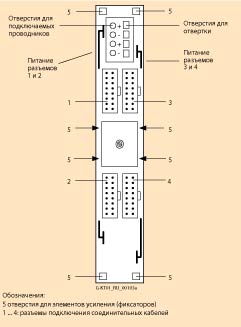 Вывод плоского кабеля в круглой внешней оболочке (соответствие см. на изображении 40-контактного аналогового штекерного модуля) |