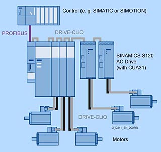 Все компоненты SINAMICS S120, включая двигатели и шифраторы, взаимодействуют по общему последовательному интерфейсу DRIVE CLiQ. DRIVE-CLIQ формирует основу для всей системы приводов. Стандартизированные кабели и соединители снижают разнообразие различных деталей и снижают затраты на хранение. Платы преобразователя (модуля датчиков) для преобразования стандартных сигналов шифроватора в DRIVE CLiQ доступны для двигателей сторонних производителей и повторно используемых приложений.