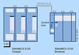 Для одноосных элементов, также называемых AC-приводами, выпрямитель и блок питания преобразователя объединены в одном устройстве, при этом модуль питания доступен в блоковом формате и формате шасси. Для одноосных приложений, функции контроля привода выполняются одноосным блоком управления (например, CU310) установленном на модуле питания. Разделения интеллектуальных функций и питания позволяет максимизировать гибкость и масштабируемость. Интеграция в многоосных приложениях легко достигается с помощью подключения каналов DRIVE CLiQ к многоосному блоку управления (например, CU320). Это реализуется благодаря установки CU-адаптера (CUA31) на модуле питания блокового формата вместо одноосного блока управления.