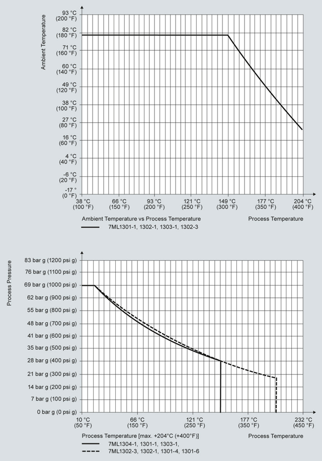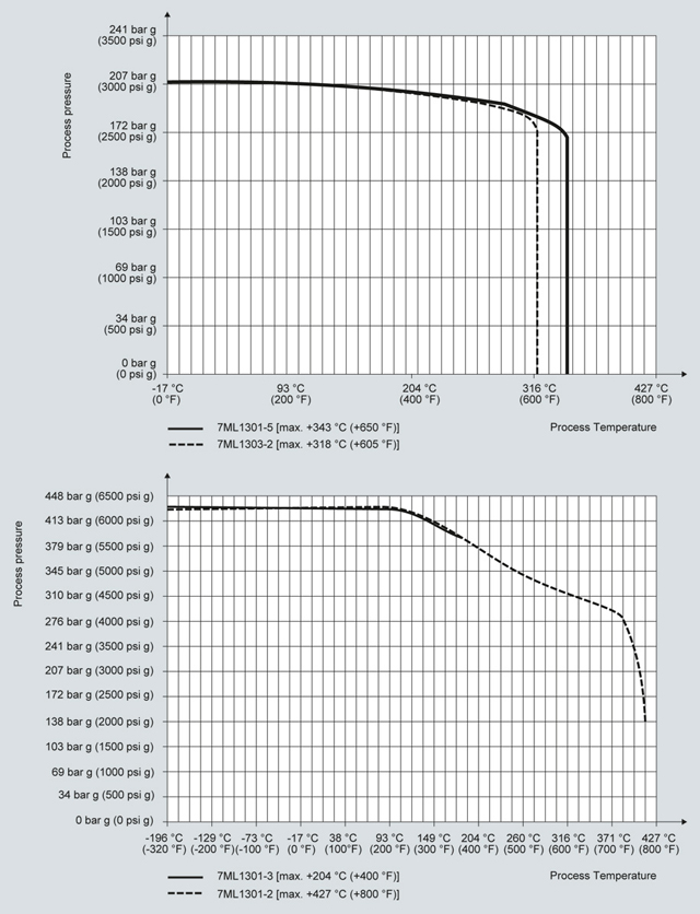 SITRANS LG200 Кривые снижения рабочих параметров давления/температура
