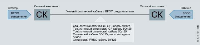 Использование предсобранного оптического кабеля с BFOC разъемами (100 Mбит/сек)