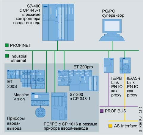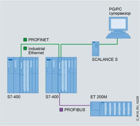Линейная структура PROFINET IO контроллер с интегрированным коммутатором реального времени
