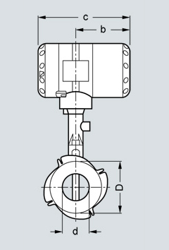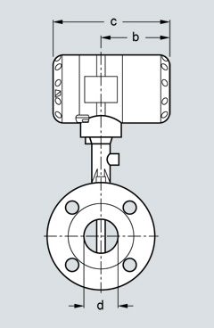 Фланцевая версия, вид сбоку, b = 105 мм (4.13 дюймов), c = 179 мм (7.05 дюймов)