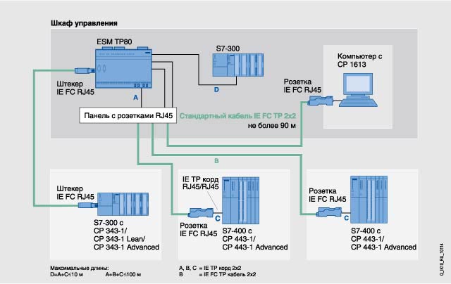 - Электрические 100Мбит/с кольцевые конфигурации. До 50 модулей ESM в кольце. Время реконфигурирования не более 0.3мс.