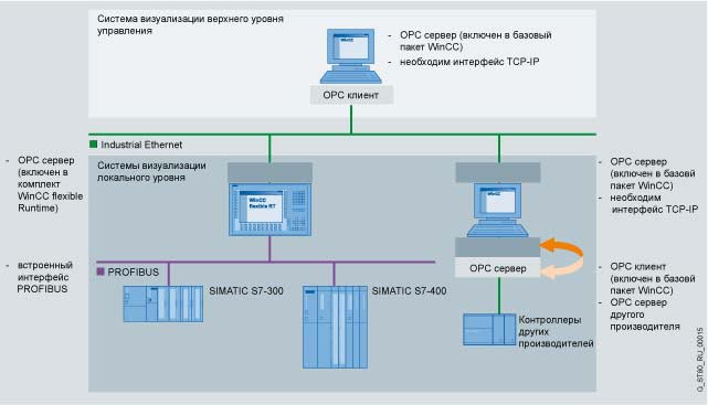 Дл подключения устройств автоматизации других производителей рекомендуется применять OPC (OLE for Process Control).