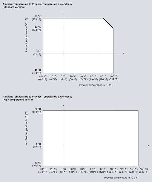 SITRANS LVL100 Кривая изменения параметров прибора по окружающей Т и Т процесса.
