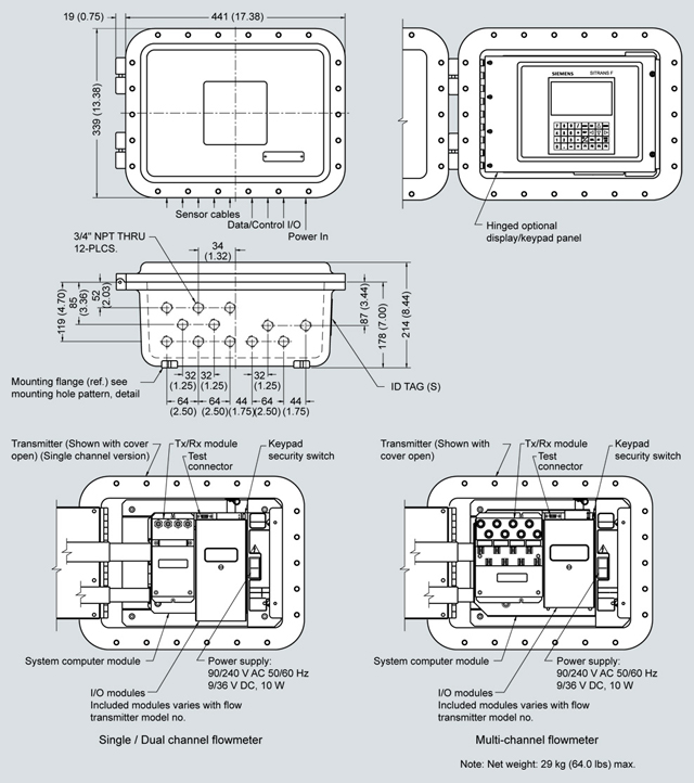 FUS1010, FUE1010, FUH1010 и FUG1010 корпус IP65 (NEMA 4X)