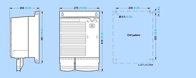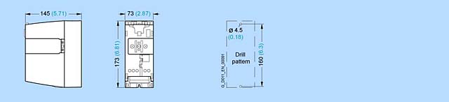 Если подключен управляющий модуль,глубина крепления возрастает до 65 мм(2.56 дюйма) и общая гдубина до 14 мм(0.55 дюйма).