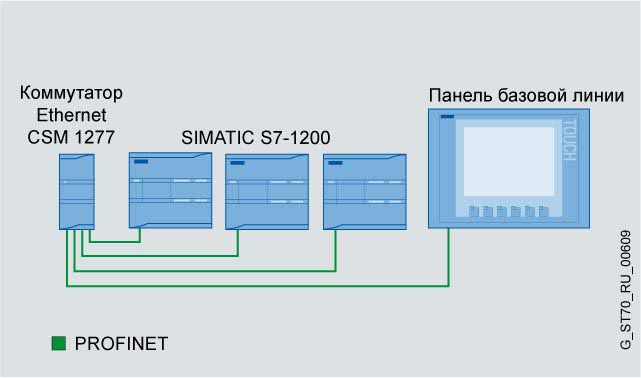 Соединение между панелью оператора базовой линии и центральным процессором контроллера SIMATIC S7-1200