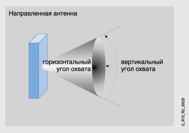 Направленная антенна формирует конусообразное электромагнитное поле (для большей ясности на рисунке антенна изображена в виде раструба). Наиболее сильное излучение создается вдоль оси этого конуса. Отклонение от оси конуса на угол более 10 практически исключает возможность установки радиосвязи. Именно поэтому такая антенна называется “направленной”.